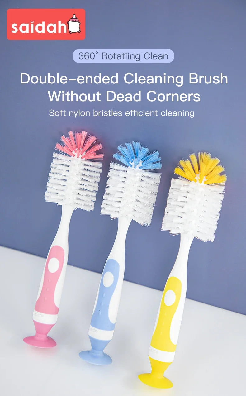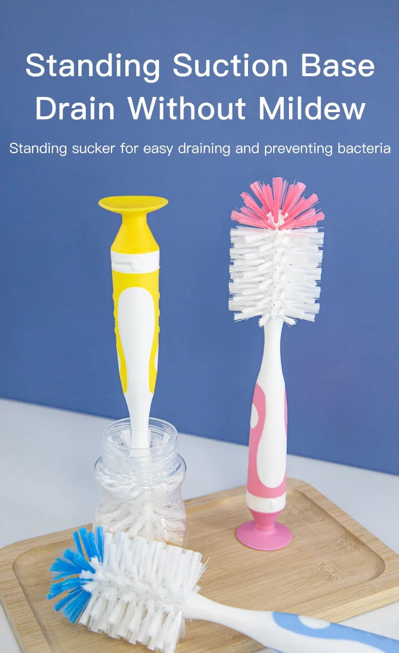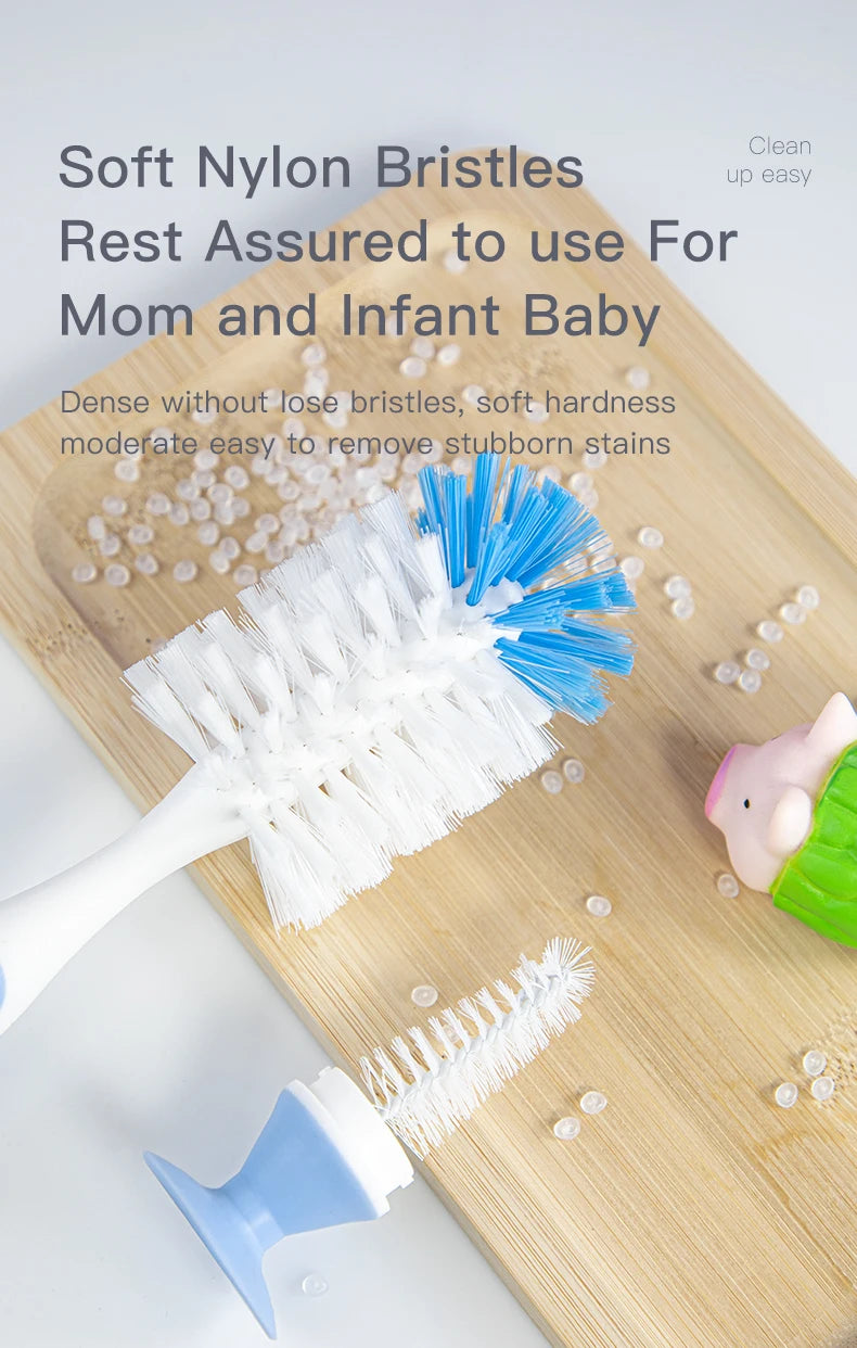 2 in 1 Mother-child Nylon Baby Bottle Cup Cleaning Brush Suction Stand Type Feeding Clean Tool Set
