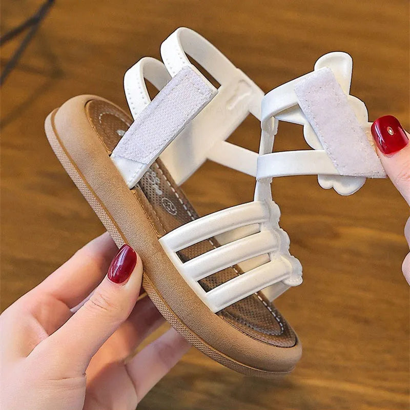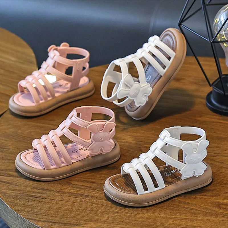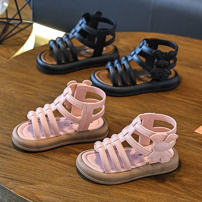 2025 New Children Sandals Girls Kids Roman Sandal Summer Soft Flat Heels High-top Beach Princess Fashion Cartoon Shoes Side Zip