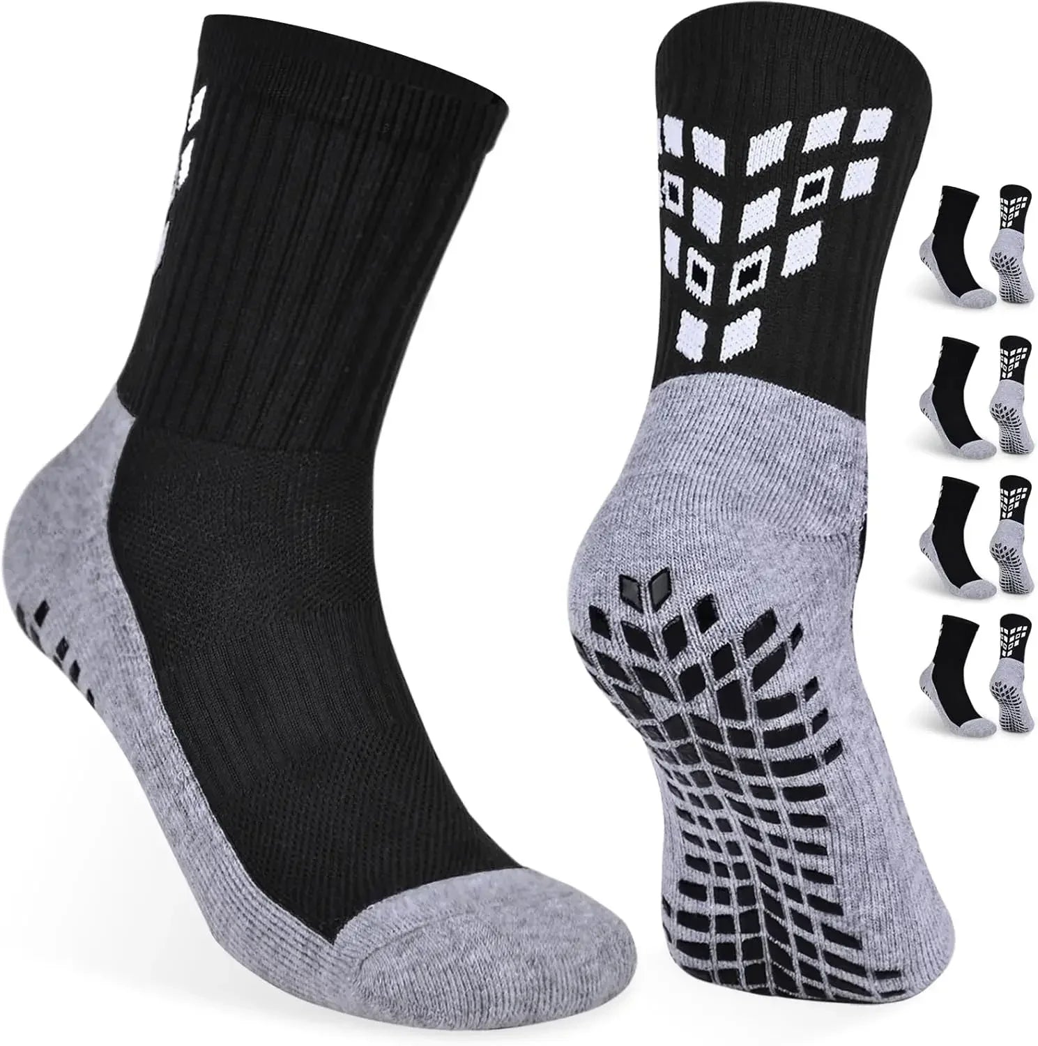 4 Pairs Non-slip Soccer Sports Socks Grip Football Basketball Socks Men Women 6-8.5 9-12