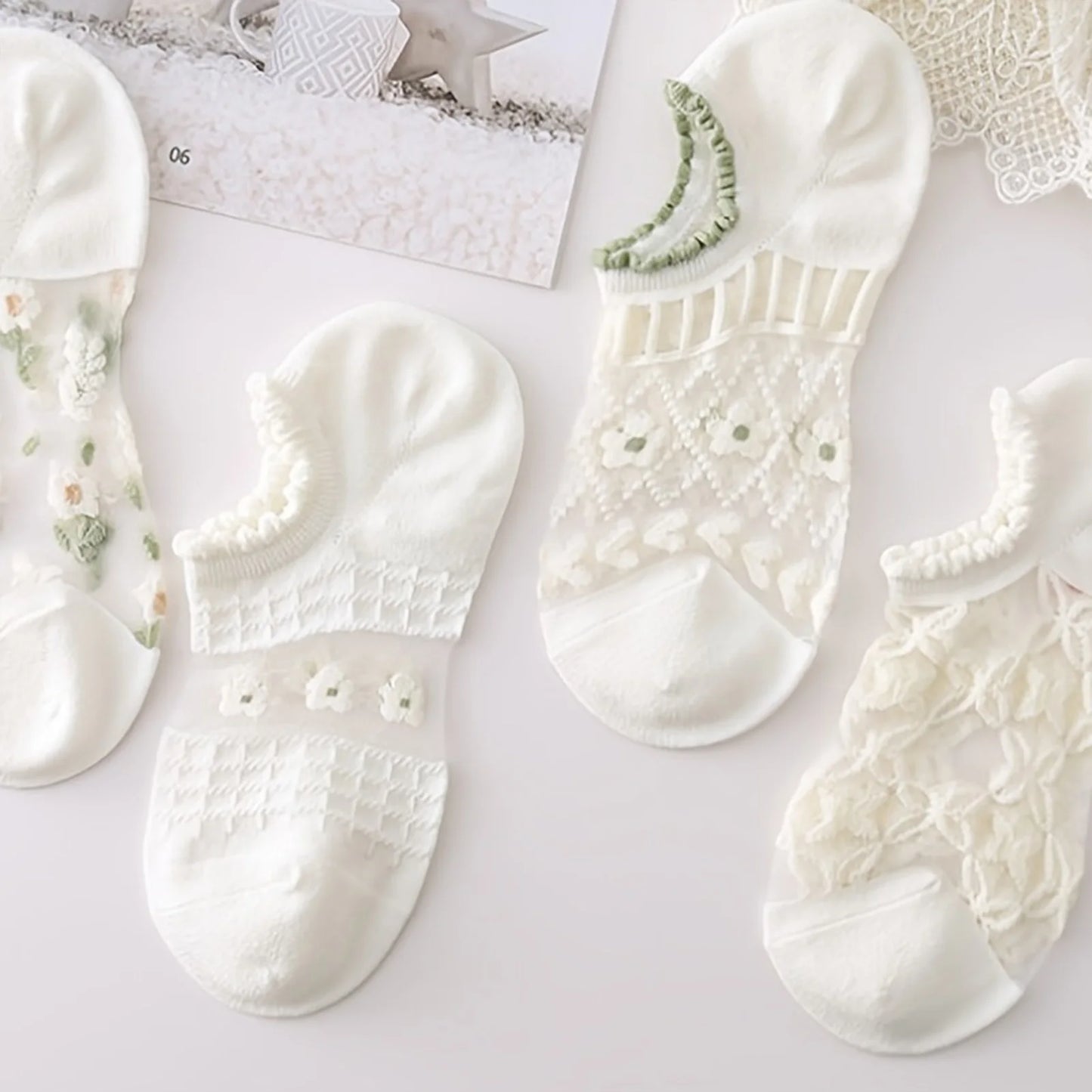 Stylish Floral Patterns: each pair of ankle socks showcases a charming mini floral pattern, adding a touch of elegance and style to your outfit while providing the perfect blend of comfort and fashion.