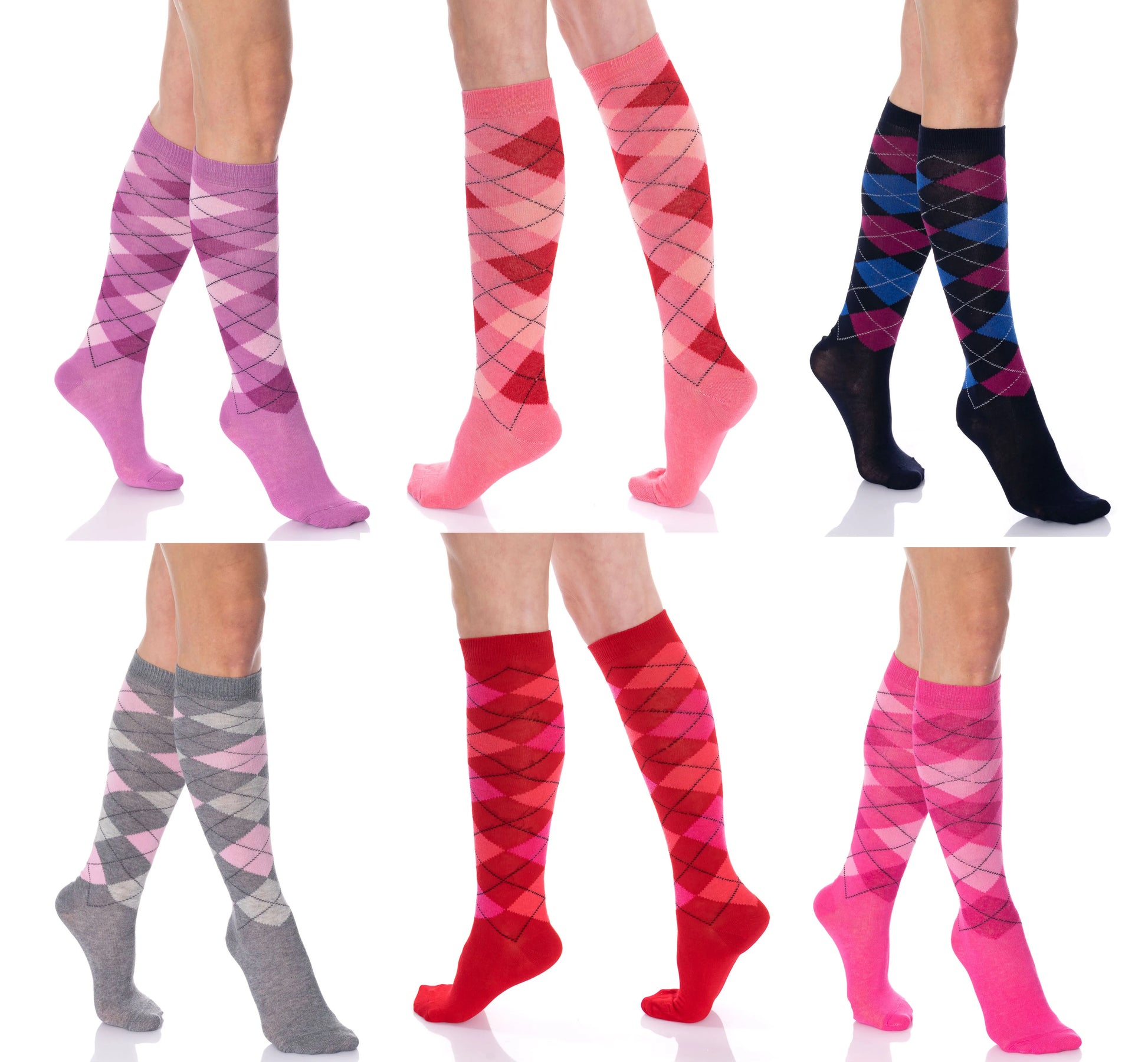 PACKAGE INCLUDED: 6 Pairs – Argyle Knee High Socks