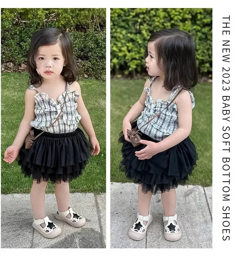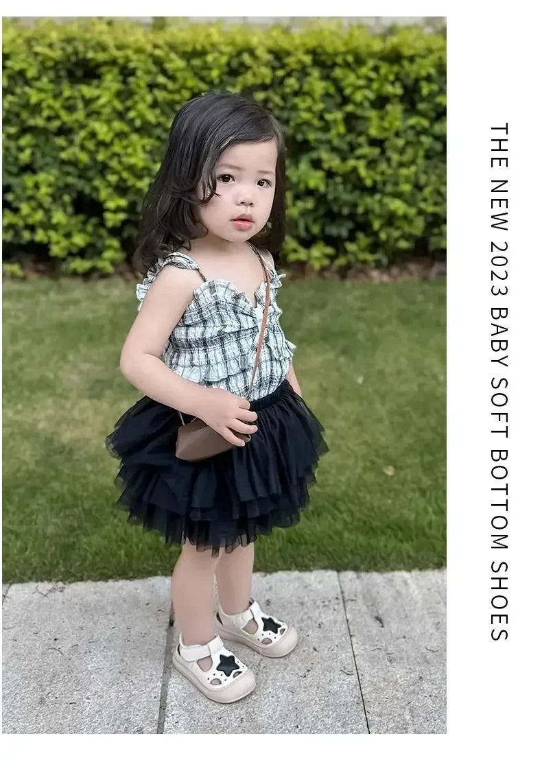 Baby Beach Shoes Non-slip Soft Sole 2025 Summer New Kids Walking Shoes Hollowed-out Breathable Baby Flat Shoes Cute Stars Sweet