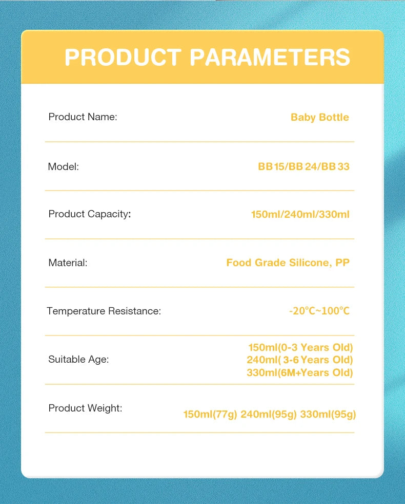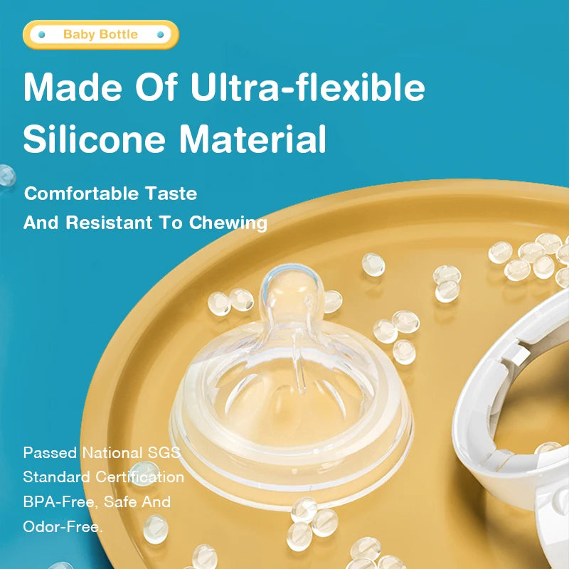 Bottles comes with skin soft material nipple and flexible spiral design, more closely resembles the breast. The comfort petals and natural nipple shape allows natural latch on and makes it easy to combine breast and bottle feeding.