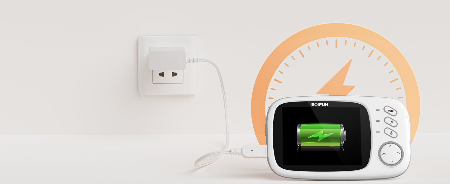 • ❤[VOX Function] - Rechargeable 750mAh Li-ion battery. In VOX mode (adjustable sensitivity), the monitor automatically enters sleep mode to save power. When a sound is heard in your baby’s room, the screen will automatically be activated.