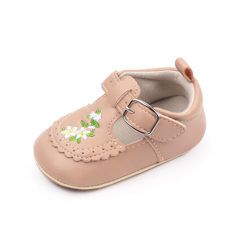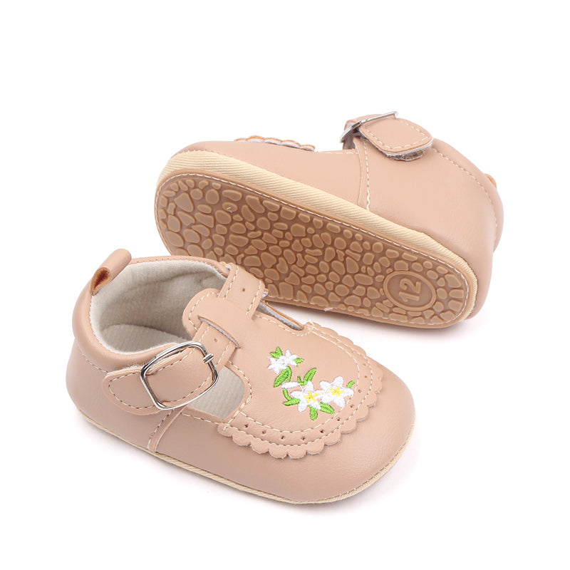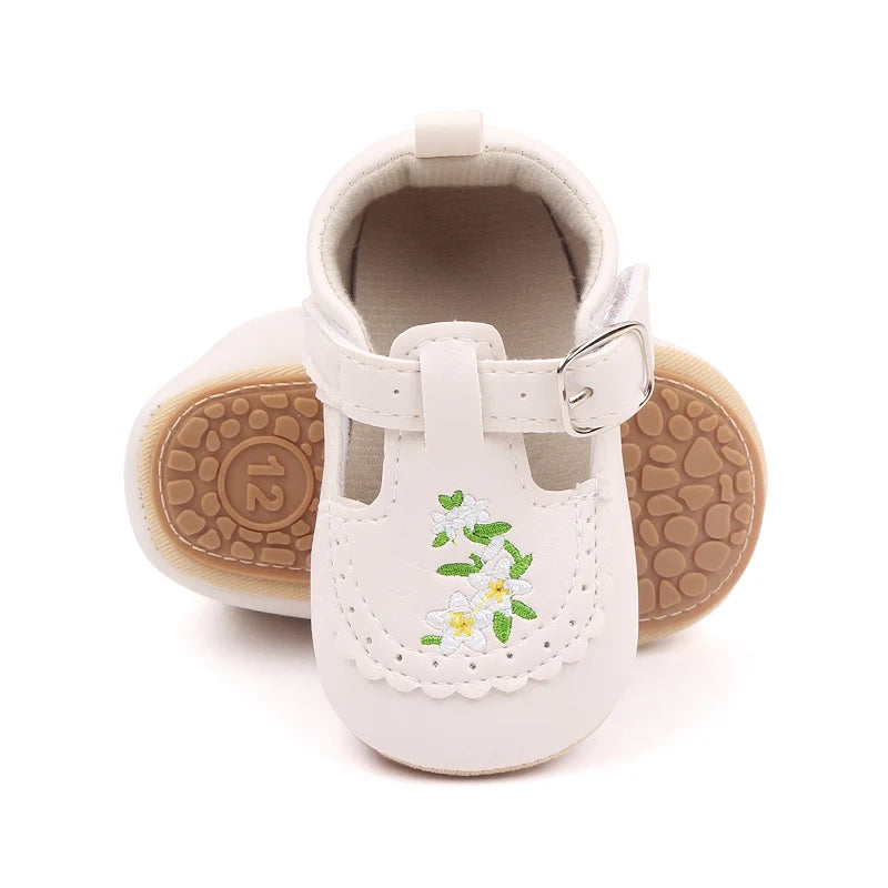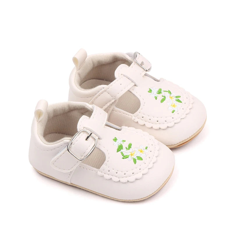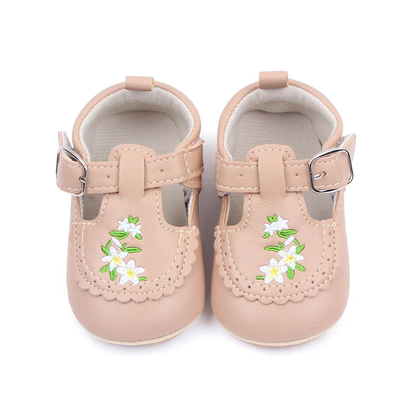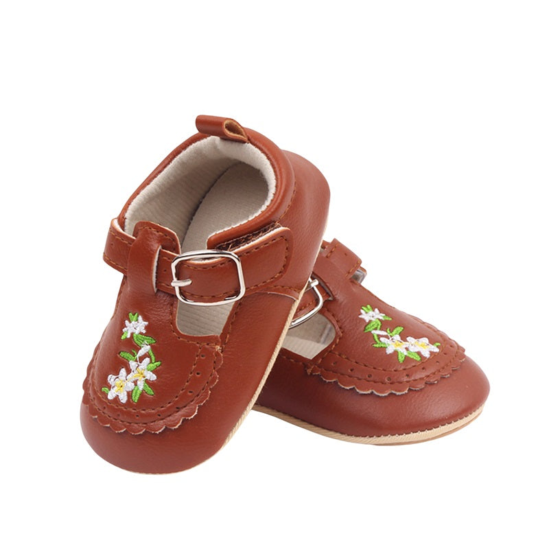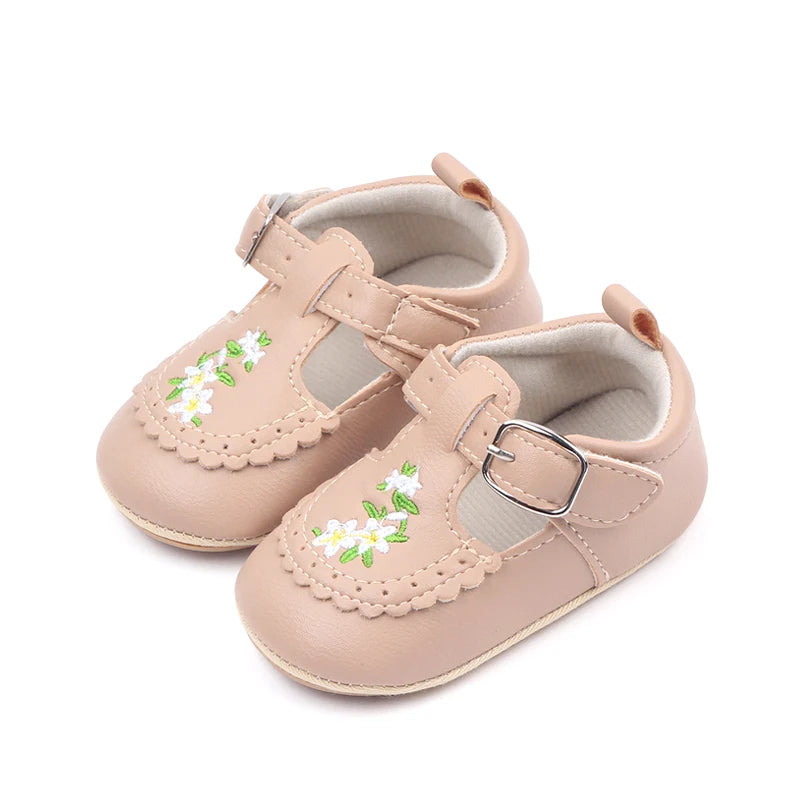 Baby Girls Princess Shoes, Soft PU Leather Embroidery Flower Non-slip First Walker Shoes Toddler Shoes