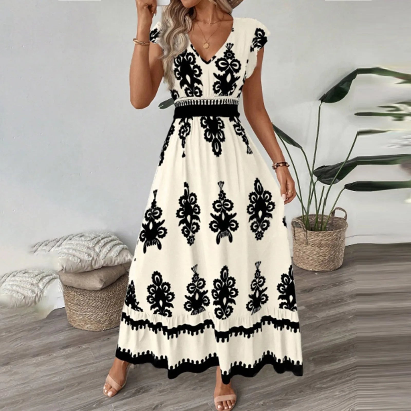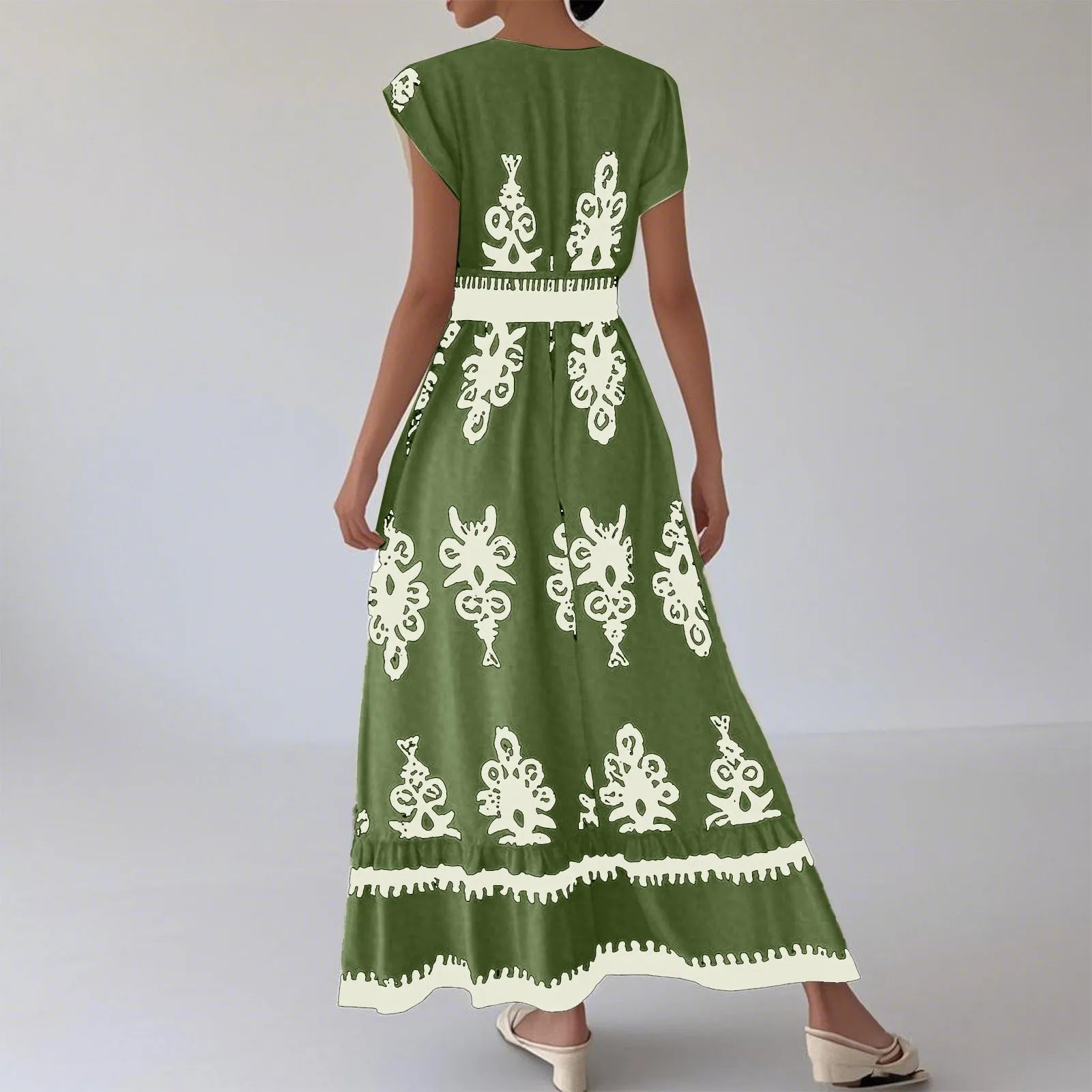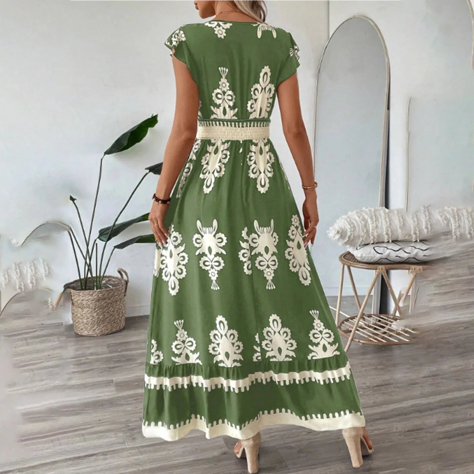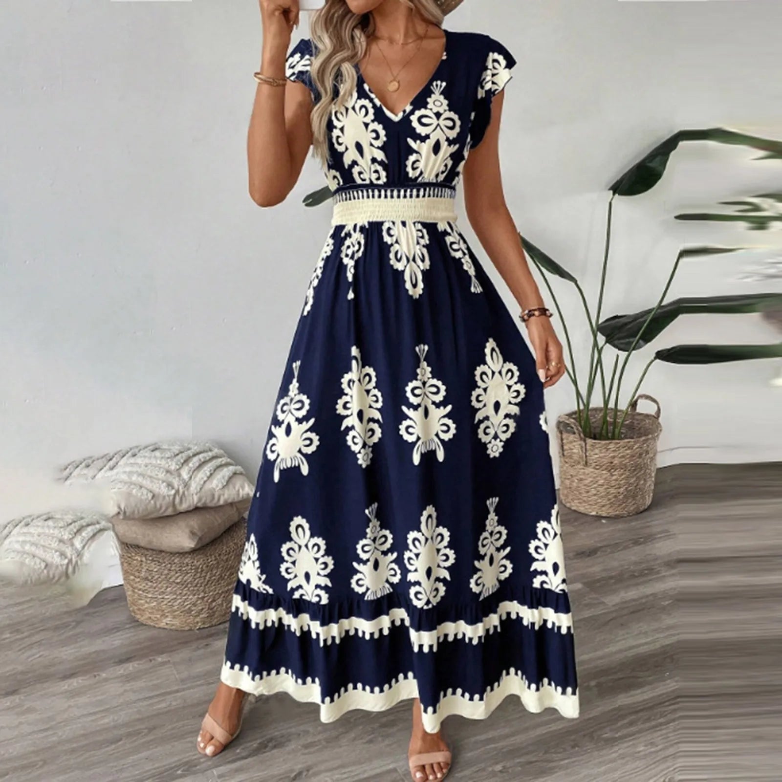 Fashion Sleeveless Maxi Boho Dress Women 2025 Summer Print Waist Bohemian Elegant Short Sleeve Dresses For Women Robe Femme