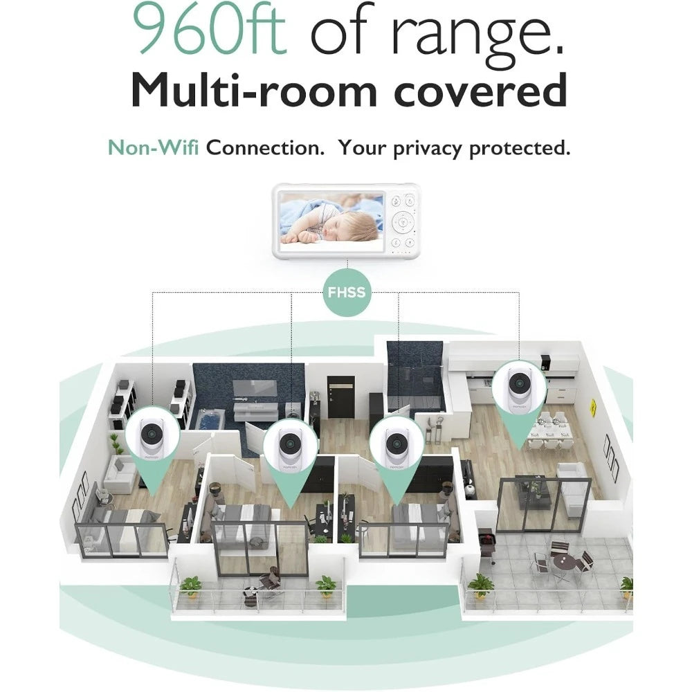 High quality 1080P 5" HD Baby Monitor w/Camera&Wall Mount,Infrared Night Vision, 5000mAh Battery,Temperature Sensor,960ft Range