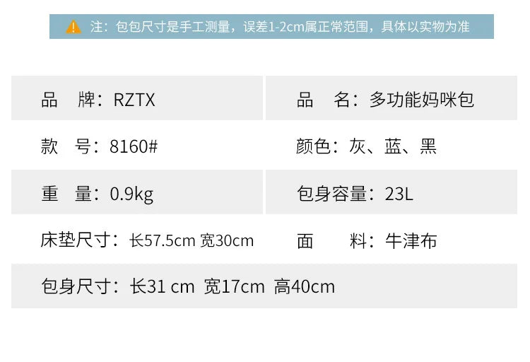 Mommy Diaper Bags Backpack Mummy Large Capacity Travel Nappy Bags Multi-function Maternity Bags with Changing Mat