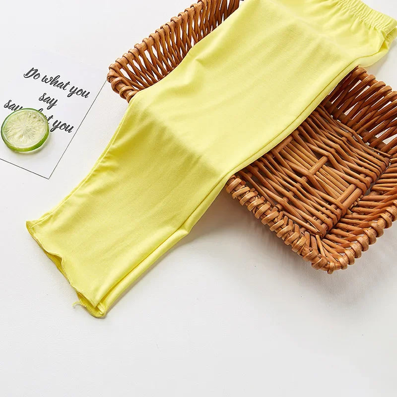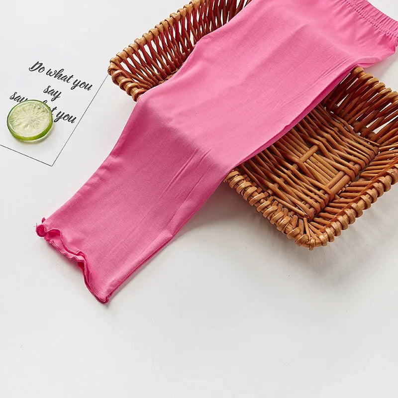 New Summer Children Clothing Girls Leggings Ruffles Kids Candy Color Modal Cotton Toddler Girl Clothes Cropped Pants 2-12 Years