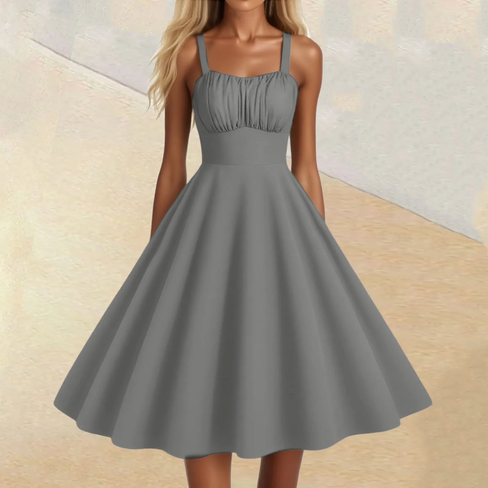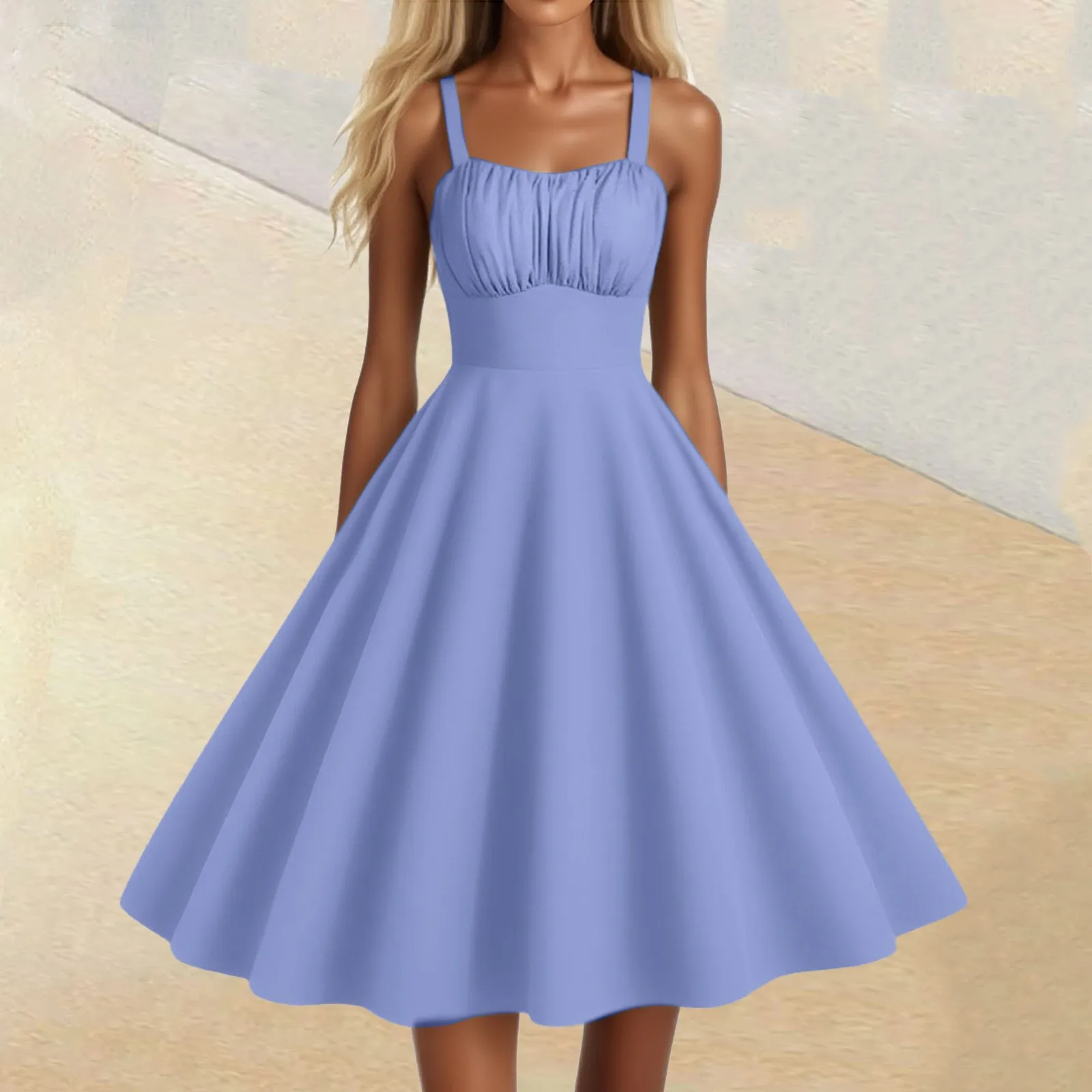 Women's Vintage Sleeveless Pleated Patchwork Cute A-Line Hem Solid Dresses