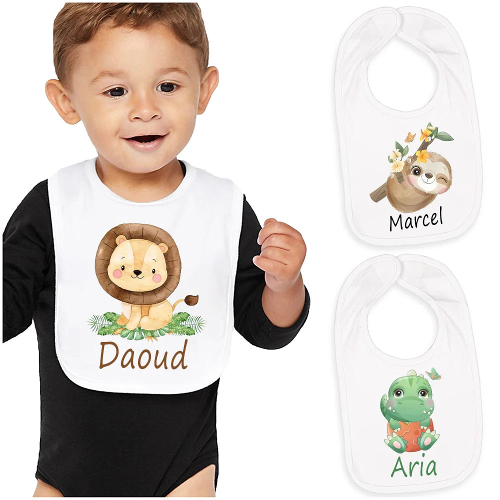 Personalized Baby Bibs Custom Name Toddler Bib Cute Animal Print Infant Bibs Newbron Shower Gift Boys Girls Bib Baby Burp Cloths