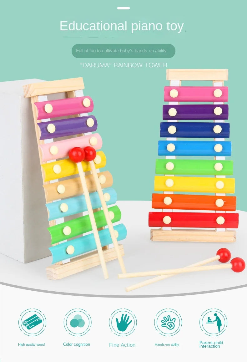 Wooden 8 Tones Multicolor Xylophone Wood Musical Instrument Toys For Baby Kids Wood Musical Instrument Toys Accessories